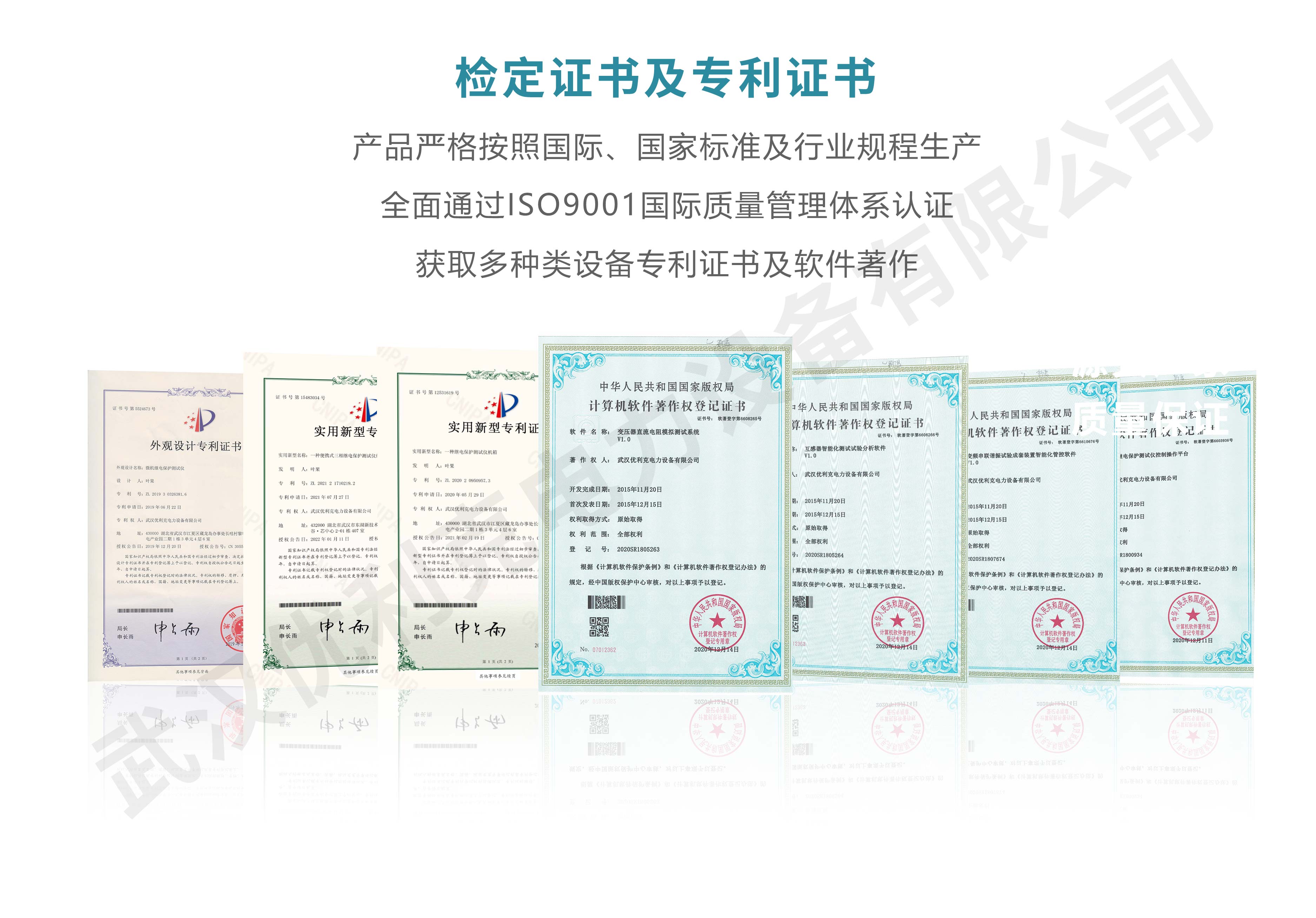 企業產品嚴格按照國際、國家標準及行業規程生產,通過國家、各省級、市級電力研究所、計量中心及電力權威部門的檢測,全面通過ISO9001國際質量管理體系認證、中華人民共和國制造計量器具許可證、GB/T19001-2016質量管理體系要求、GB/T24001-2016環境管理體系要求、GB/T45001-2020職業健康安全管理體系要求。